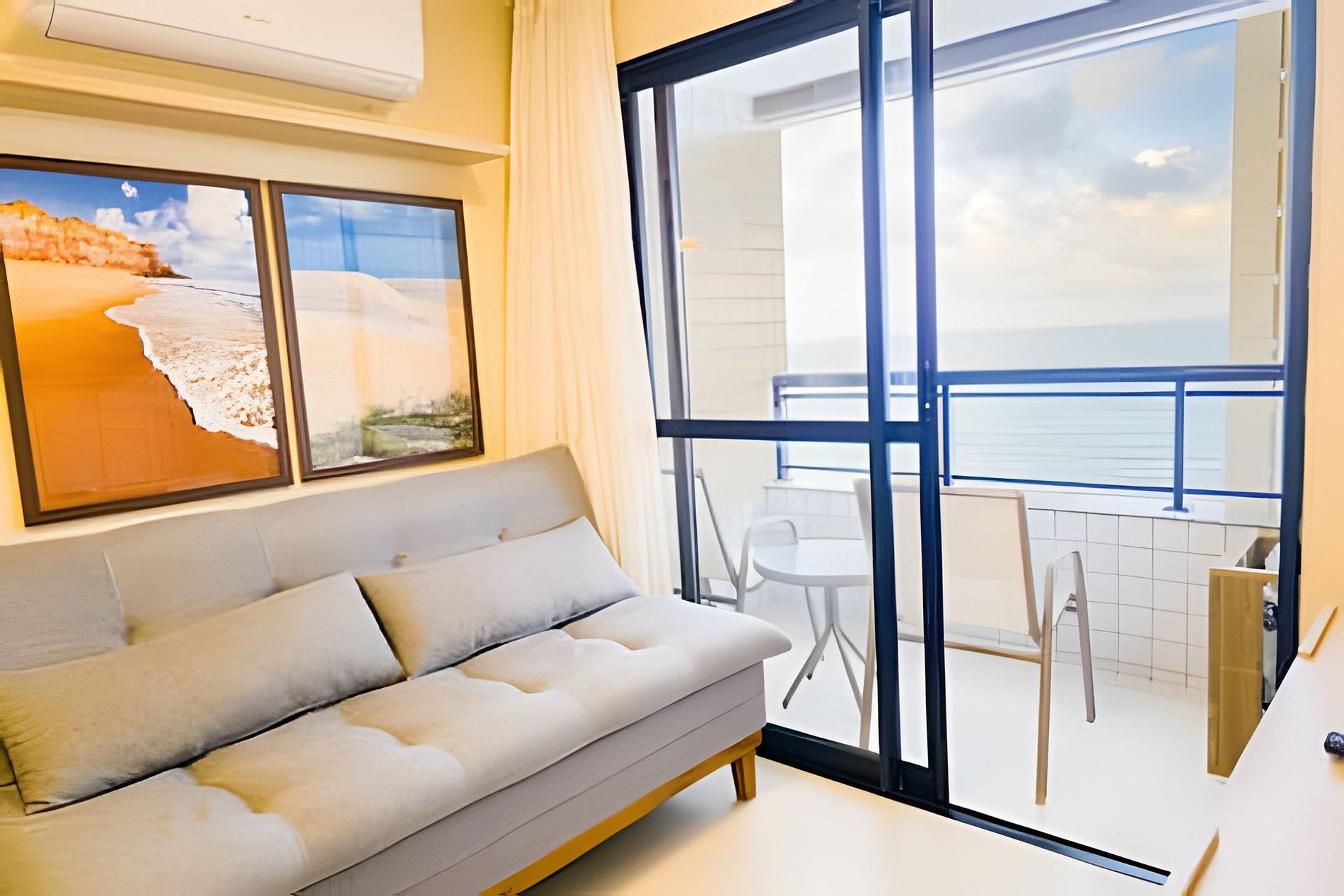 Apartamento aconchegante com sala ampla para dois ambientes, integrada à sala de jantar com mesa para 4 pessoas. A cozinha em conceito aberto conecta os espaços com praticidade e estilo. A varanda oferece uma vista incrível para a praia de Ponta Negra, perfeita para relaxar. O quarto é confortável e bem decorado, com banheiro privativo que garante total privacidade. Ambientes harmoniosos e bem planejados para sua melhor experiência.