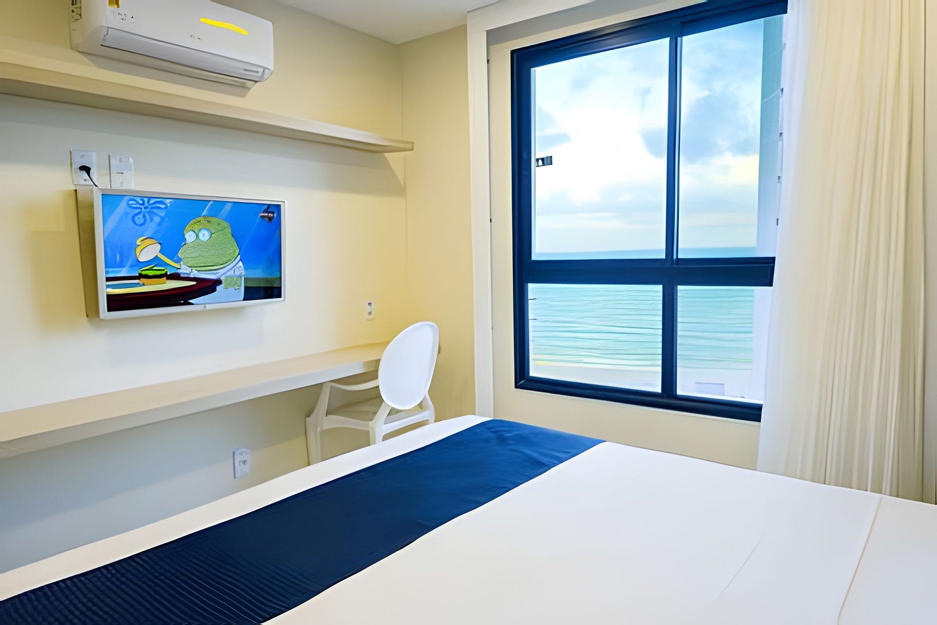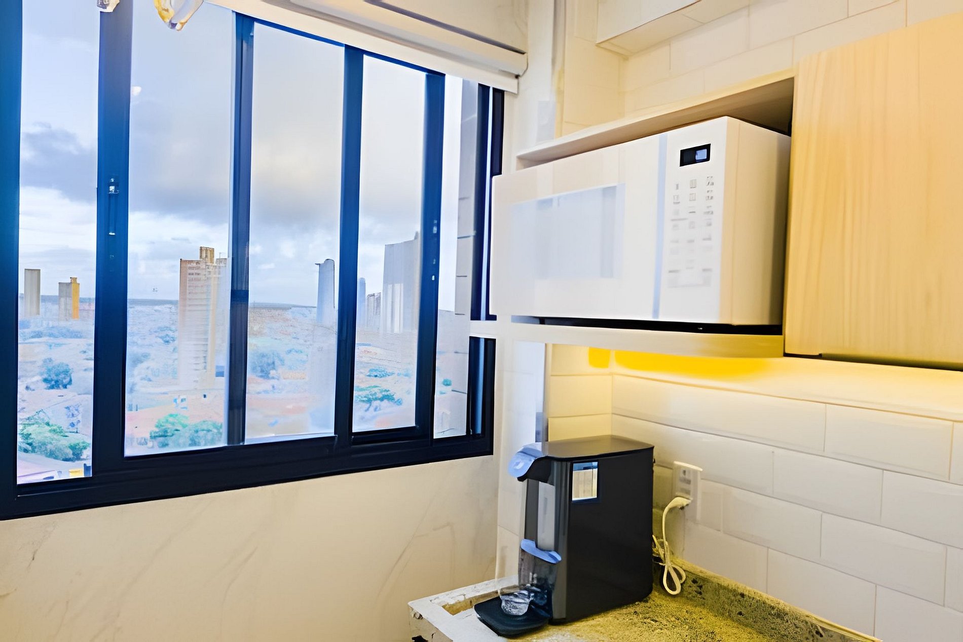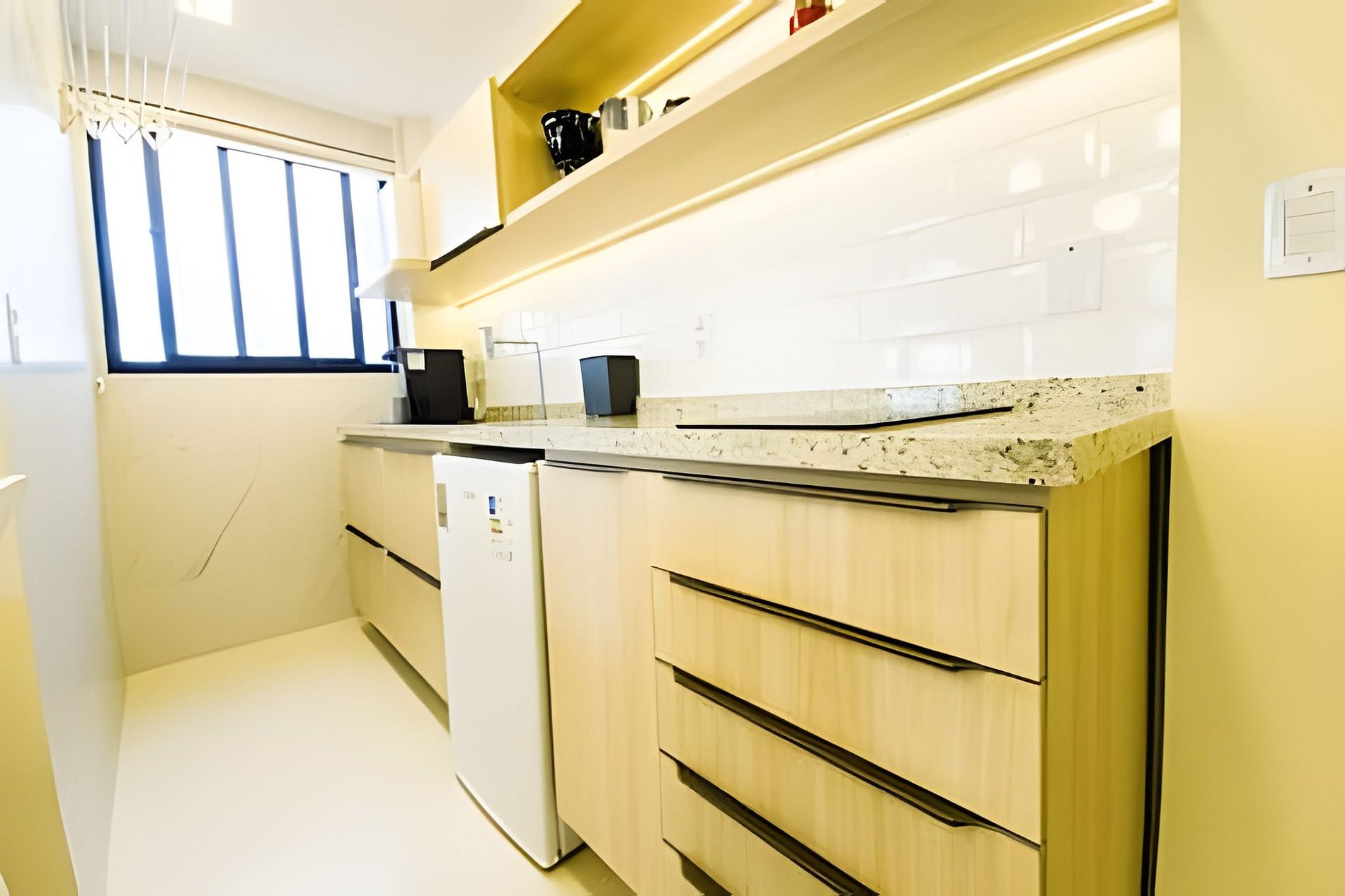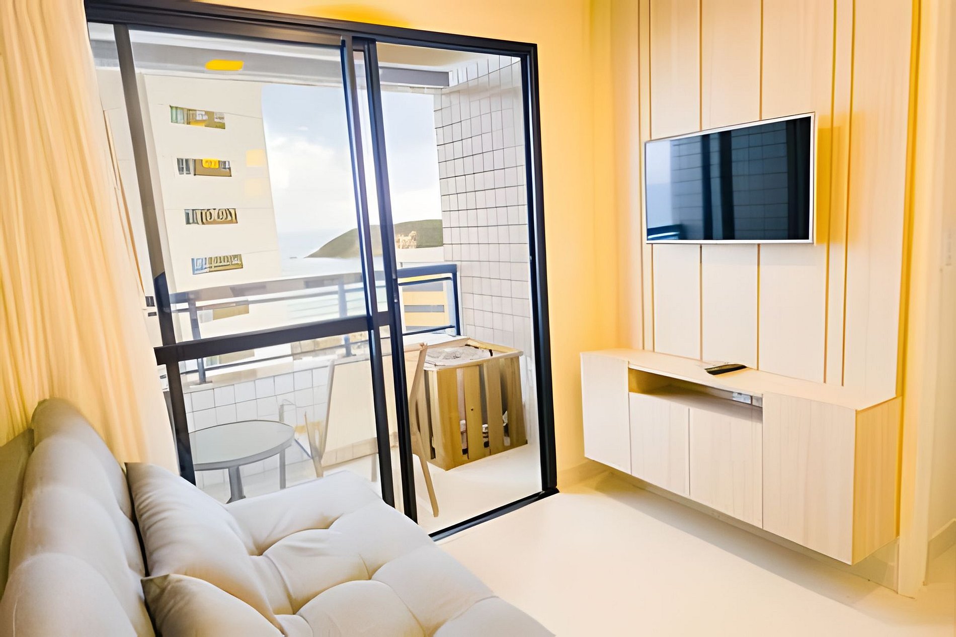Apartamento aconchegante com sala ampla para dois ambientes, integrada à sala de jantar com mesa para 4 pessoas. A cozinha em conceito aberto conecta os espaços com praticidade e estilo. A varanda oferece uma vista incrível para a praia de Ponta Negra, perfeita para relaxar. O quarto é confortável e bem decorado, com banheiro privativo que garante total privacidade. Ambientes harmoniosos e bem planejados para sua melhor experiência.