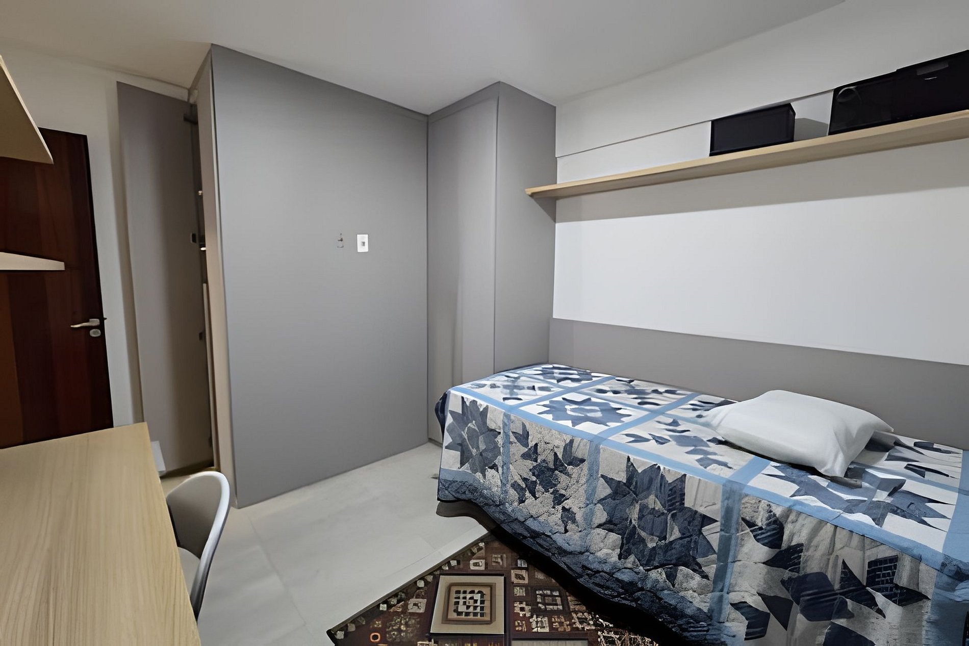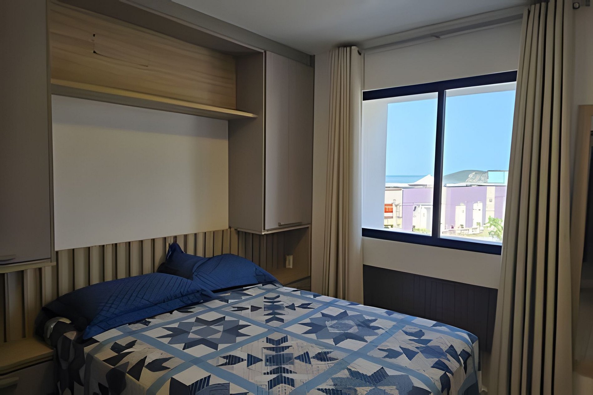 O quarto com cama de solteiro e bicama, possui ar-condicionado. Os demais cômodos contam com ótima circulação de ar, garantindo um ambiente sempre agradável.