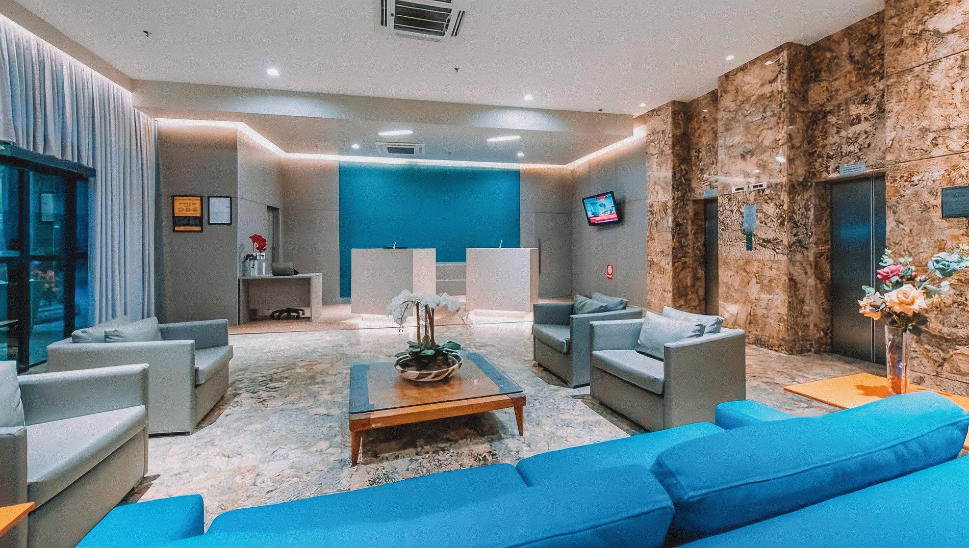 A recepção funciona 24 horas, pronta para atender a todas as suas necessidades.