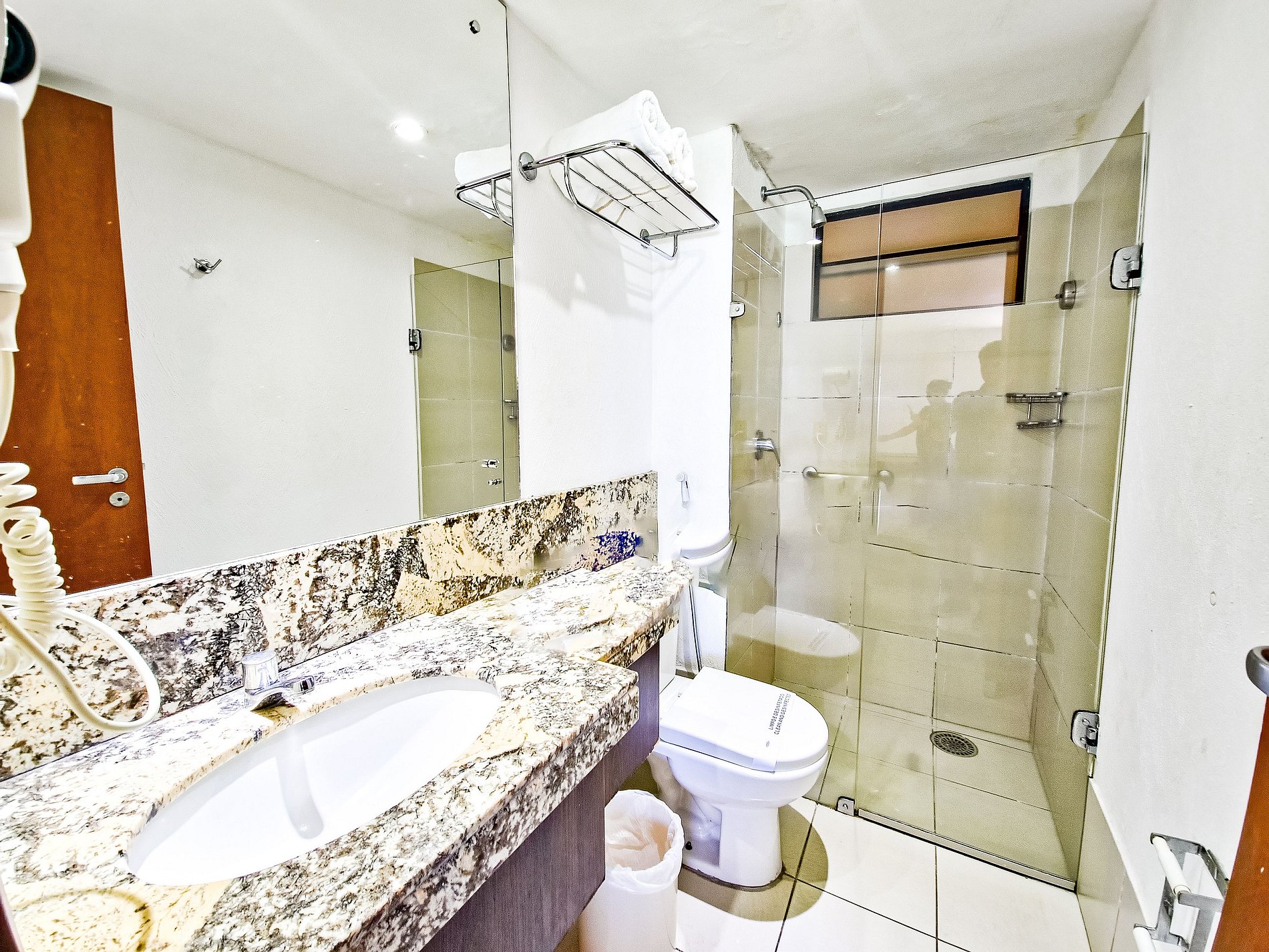 O banheiro conta com um chuveiro relaxante e toalhas felpudas, a dupla perfeita para revitalizar-se após um dia de passeios.
