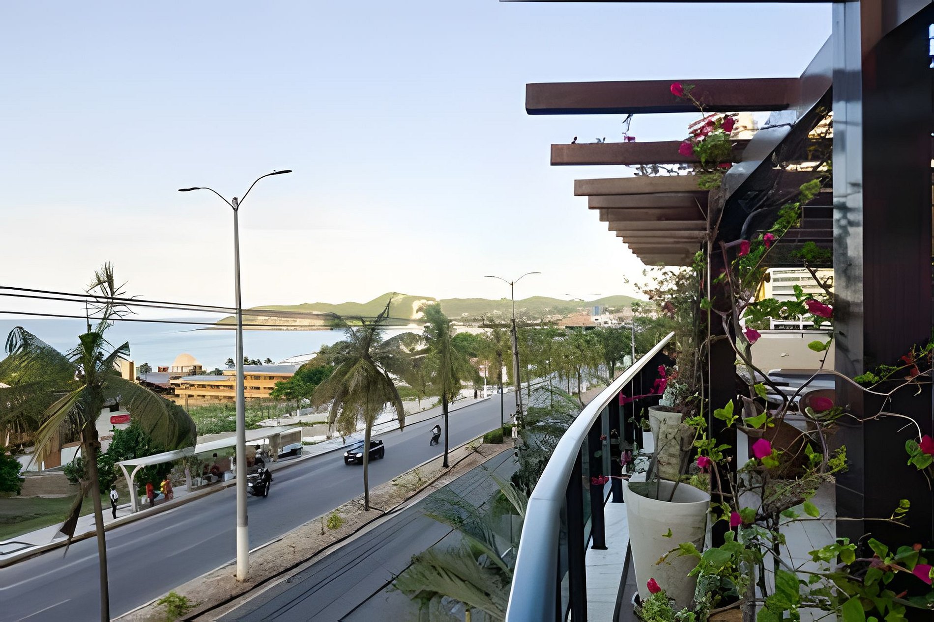 - A varanda de vidro oferece uma vista impressionante da praia, ideal para aproveitar o pôr do sol ou relaxar com uma bebida.
