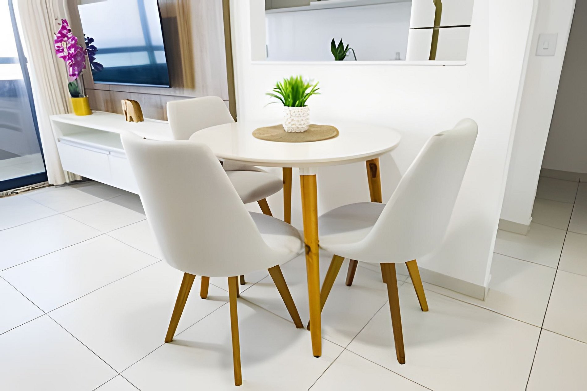 - Mesa de jantar para 4 pessoas, ideal para refeições em família ou entre amigos.