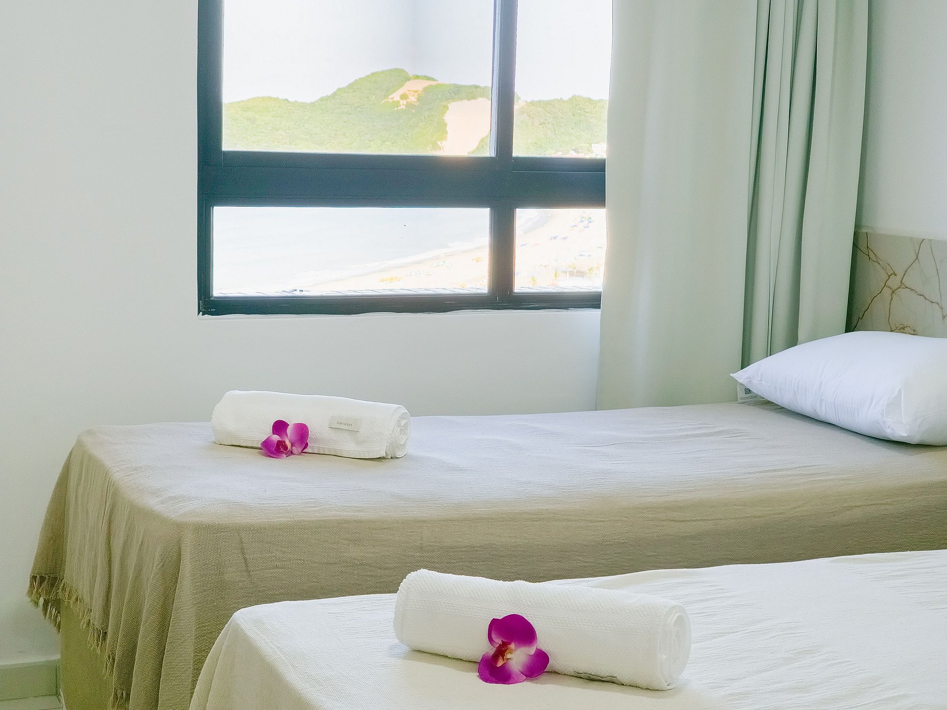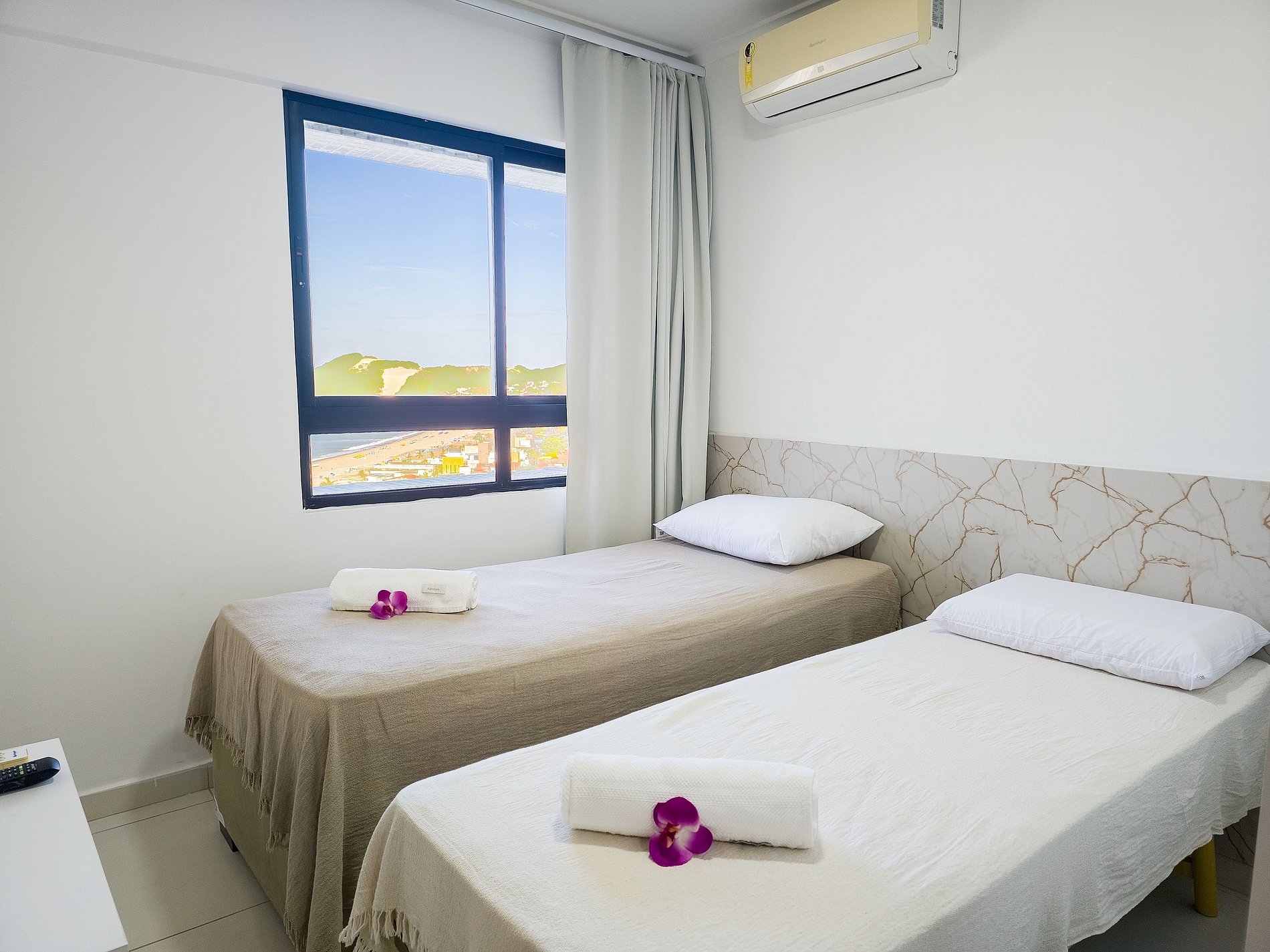 Hospede-se no moderno Condomínio Luxor Ponta Negra, um dos empreendimentos mais desejados da orla de Natal, e desfrute da combinação perfeita entre conforto, localização estratégica e uma das vistas mais incríveis da cidade: o famoso Morro do Careca.